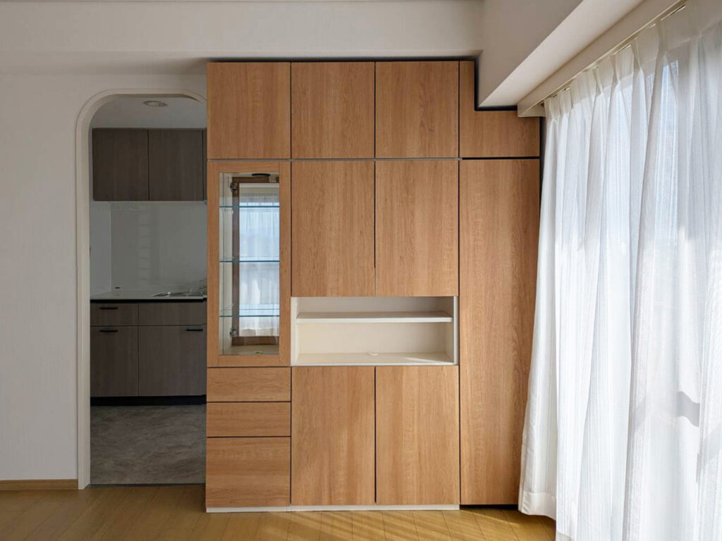 ぴったり収まる「キュリオケース付き壁面収納」