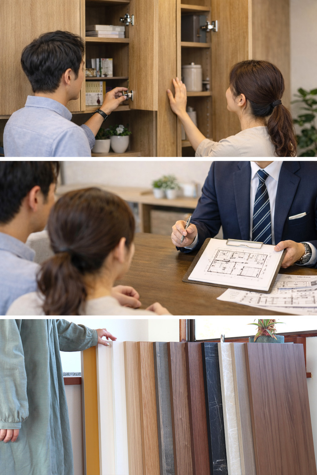 販売店様の営業時間内にいつでも見学いただけることに加えて、下記より事前にご予約してご来店いただきますと、当社営業スタッフが、お店の販売員様とご一緒に、商品説明・組合せプランニング等のご案内をさせていただきます。