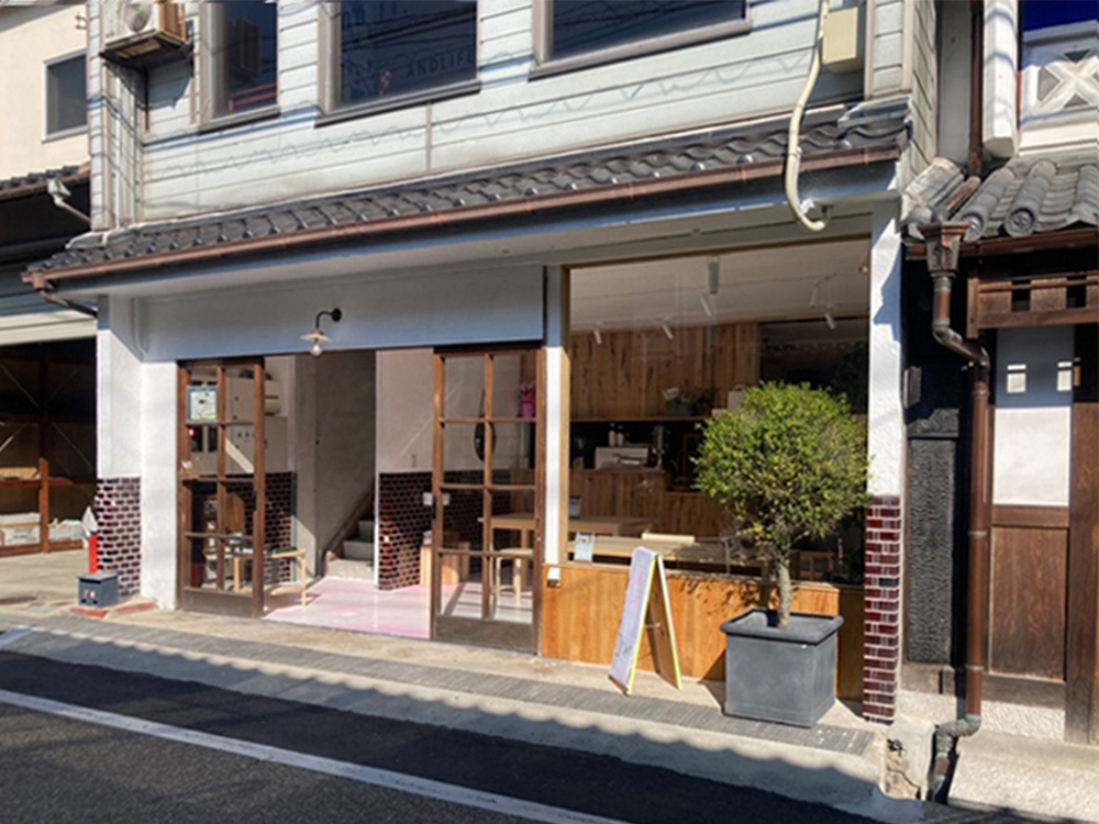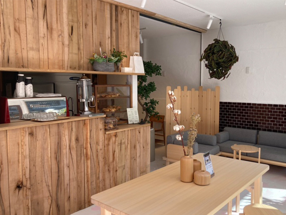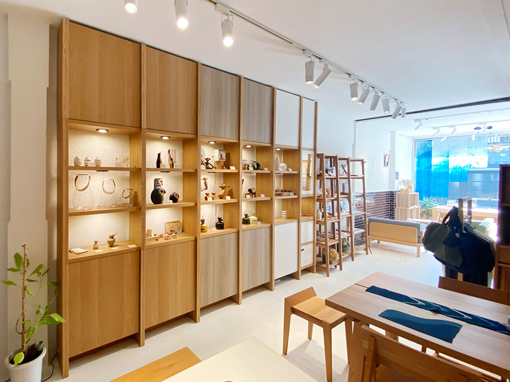 当社創業の地でもあるこのエリアの建物1階で、ベーグルカフェを併設したインテリアショールームです。